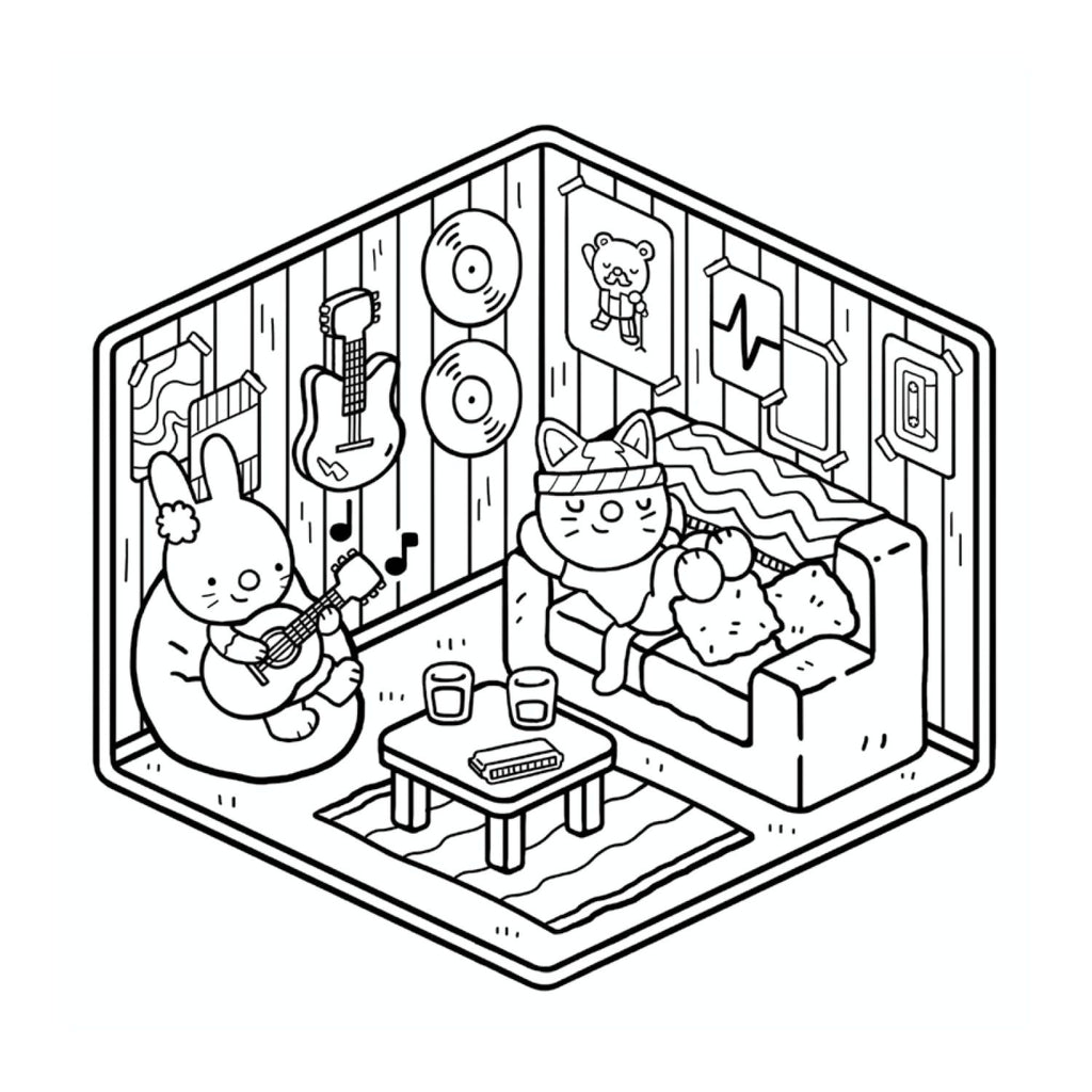 Discover a host of adorable animals enjoying time at home, whether they’re doing a spot of decorating, relaxing in front of the TV, baking a cake or taking a shower. Bring these images to life with coloured pencils and make each adorable scene your own.