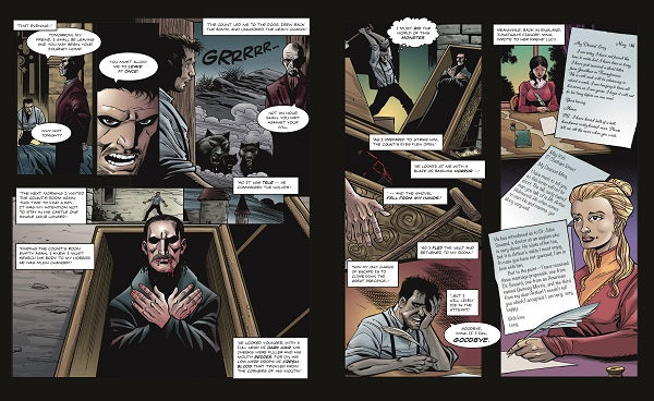 Witness the sinister machinations of the ever-hungering undead count, in a retelling of Bram Stoker's vampire story, Dracula. Shiver at the reanimation of unliving flesh and a relentless quest for vengeance in Mary Shelley's Frankenstein. And experience the ultimate clash of reason and superstition in Sir Arthur Conan Doyle's most uncanny detective story, The Hound of the Baskervilles.