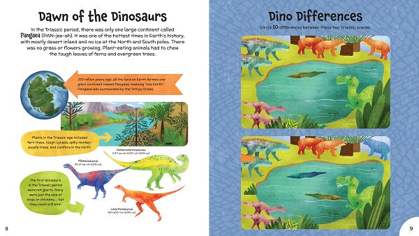 prehistoric creatures and their world. Next, solve cool puzzles, such as dino mazes, wordsearches, code crunchers, and spot-the-difference activities