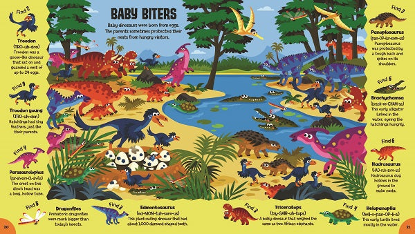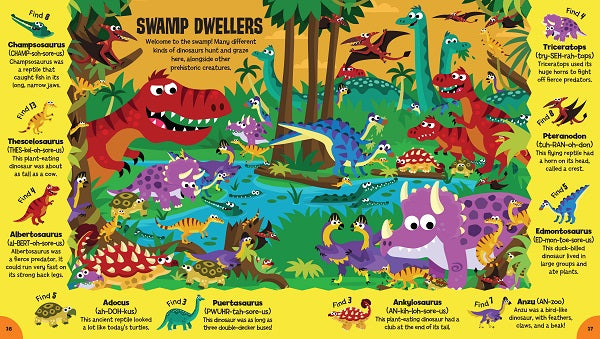 From fierce meat-eaters to peaceful plant-eaters, there are so many things to spot on a dinosaur trek! Filled with colourful illustrations and a wonderful cast of dinosaurs to find, this exciting activity book is guaranteed to keep children aged 5+ entertained for hours on end.