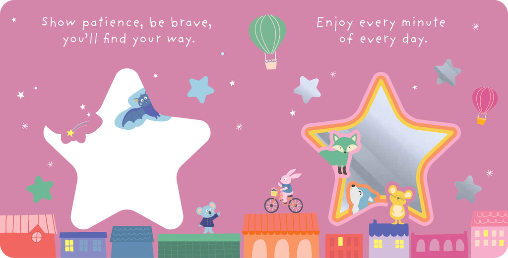 This charming board book is designed to be enjoyed during cosy reading time between little ones and their caregivers. The sweet rhyming text encourages children to aim high with the reassuring message that someone loving will always be there to support them. Little ones will be captivated by sweet illustrations of animal friends admiring the stars. Graduating die-cuts lead to a mirror on the final spread to reflect the real star of the story – the little one themselves. Graduating die-cut pages add an extra element of interaction to keep children entertained and engaged.